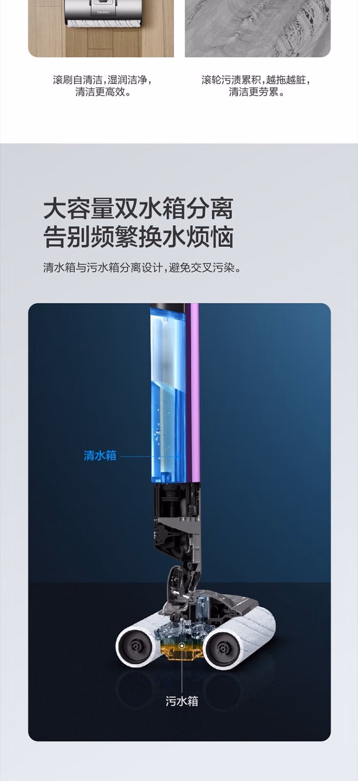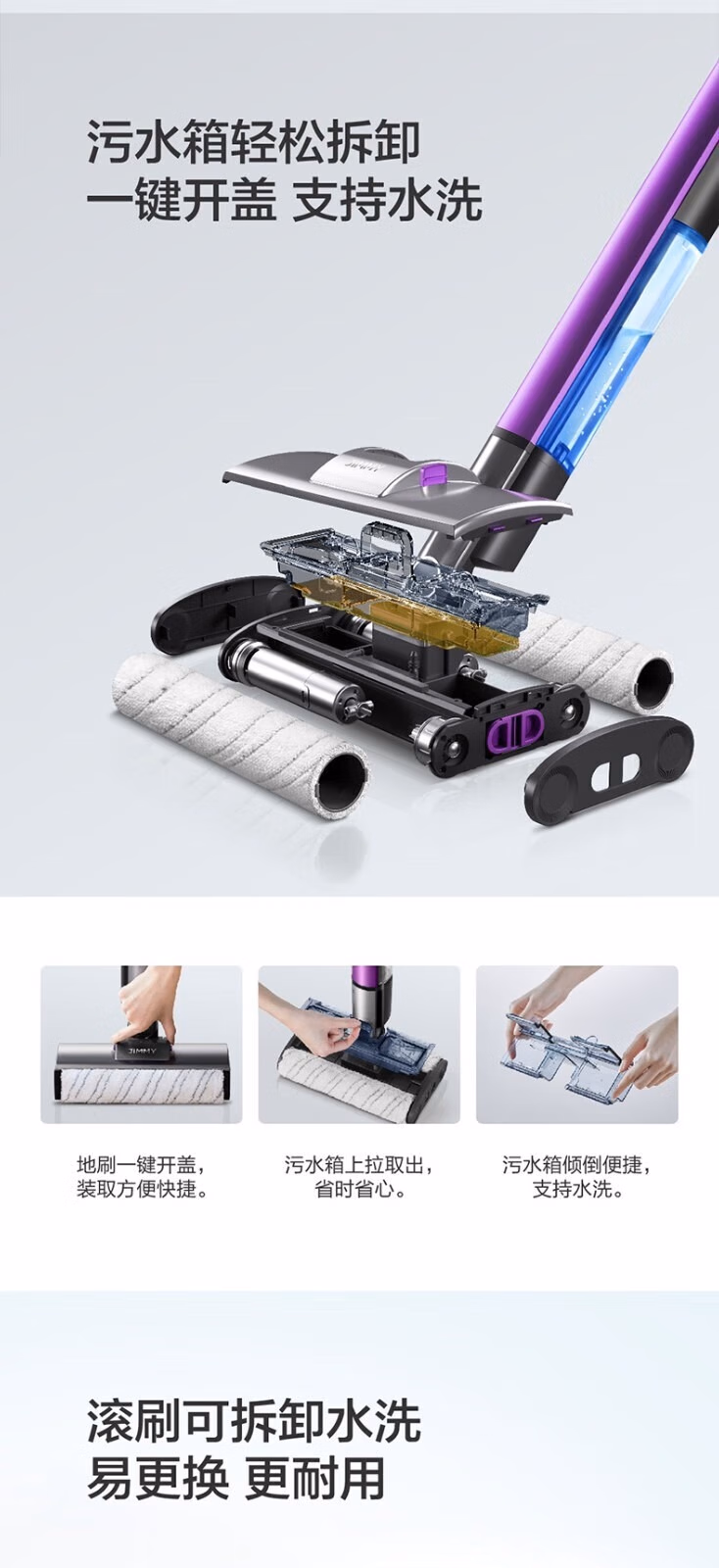 電機配置:有刷數(shù)碼電機 額定功率:60w 電池容量:4*2000mAh 運行時間:30分鐘 充電時間:4h 整機尺寸:1130*284*174mm 強烈推薦,性價比非常高的洗地機 輕便洗地 一洗而凈 不留水漬 洗過就干 清潔不留死角 自清潔免手洗 多點噴水 即擦即干